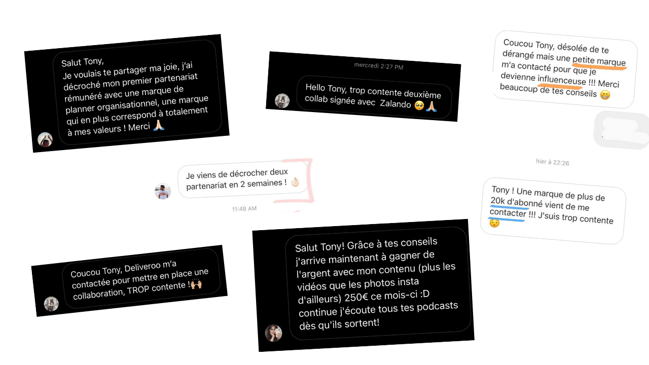 (Tu verras plus loin sur cette page comment certains de mes clients ont collaboré avec des marques connues malgré leur petite audience)