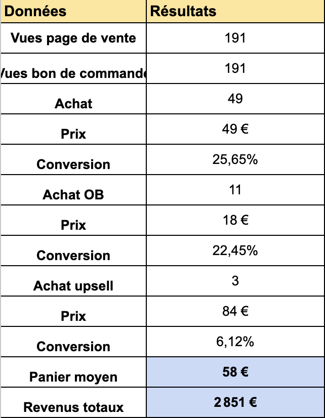 Si tu vends par exemple ton produit digital à 245€, Funnel Academy sera alors rentabilisée dès la seconde vente générée par ton tunnel de vente.