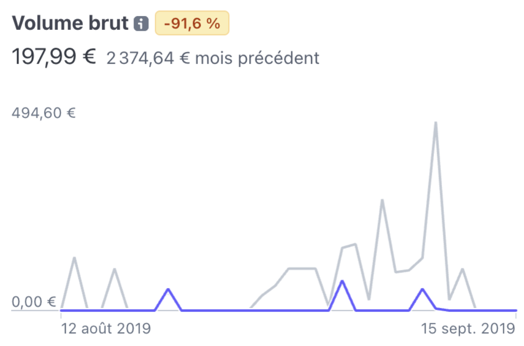Les 30 jours qui ont suivi, j’ai à peine généré 200€ (contre 2400€ le mois précédent).