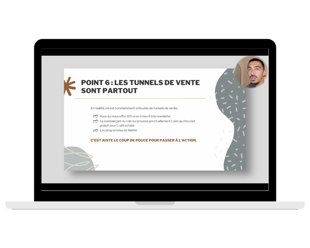 Mon travail avec cette formation a été de simplifier au maximum le système de tunnel de vente et de rendre le programme le plus pédagogique possible.