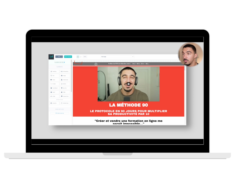 Une fois la formation terminée (7h de visionnage), tu pourras amplement mettre en place ton premier tunnel de vente en moins de 4h.